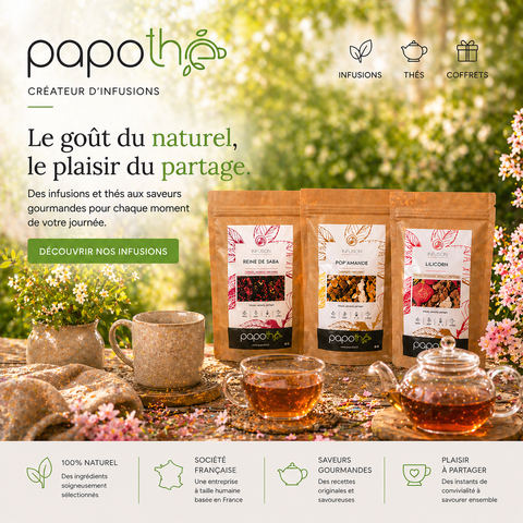 Découvrez les thés, infusions et bonbons à infuser Papothé : des créations gourmandes imaginées par une Marque Française engagée pour le goût et la qualité.