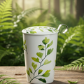 Laissez-vous séduire par la Tisanière TEAEVE® Trees de Eigenart, un mug en porcelaine à double paroi aussi pratique qu’élégant. Inspirée par la nature, cette collection met à l’honneur de délicates feuilles aquarellées dans des tons verts et bleus, apportant une touche de fraîcheur à chaque moment de dégustation.