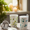 Tisanière TEAEVE Trees – Mug à Thé Double Paroi avec Filtre Inox et Couvercle en Porcelaine